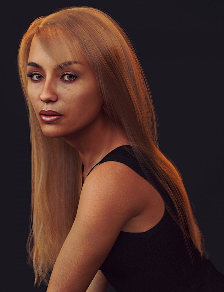 Regina hair is a long flowing hairstyle with side-swept bangs for your Genesis 8 Females utilizing dForce hair technology.