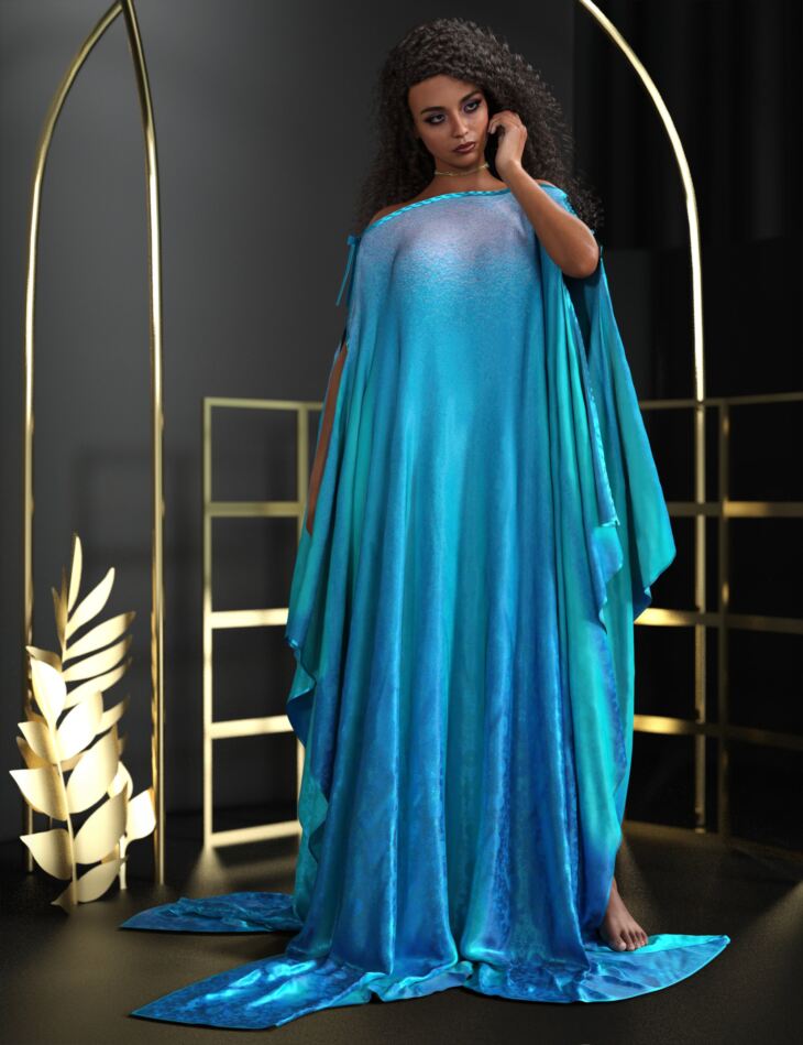 The dForce Romina Outfit for Genesis 8 and 8.1 Females is a romantic full-length dress with beautiful folds. The dress is discretely open on the sides without showing too much skin. The outfit consists out of the dress, choker necklace, and ribbon.