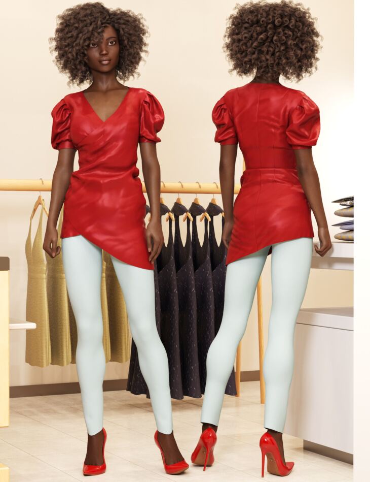 The dForce Silk Dress for Genesis 8 and 8.1 Females includes underwear, leggings, and a conforming and dForce dress.