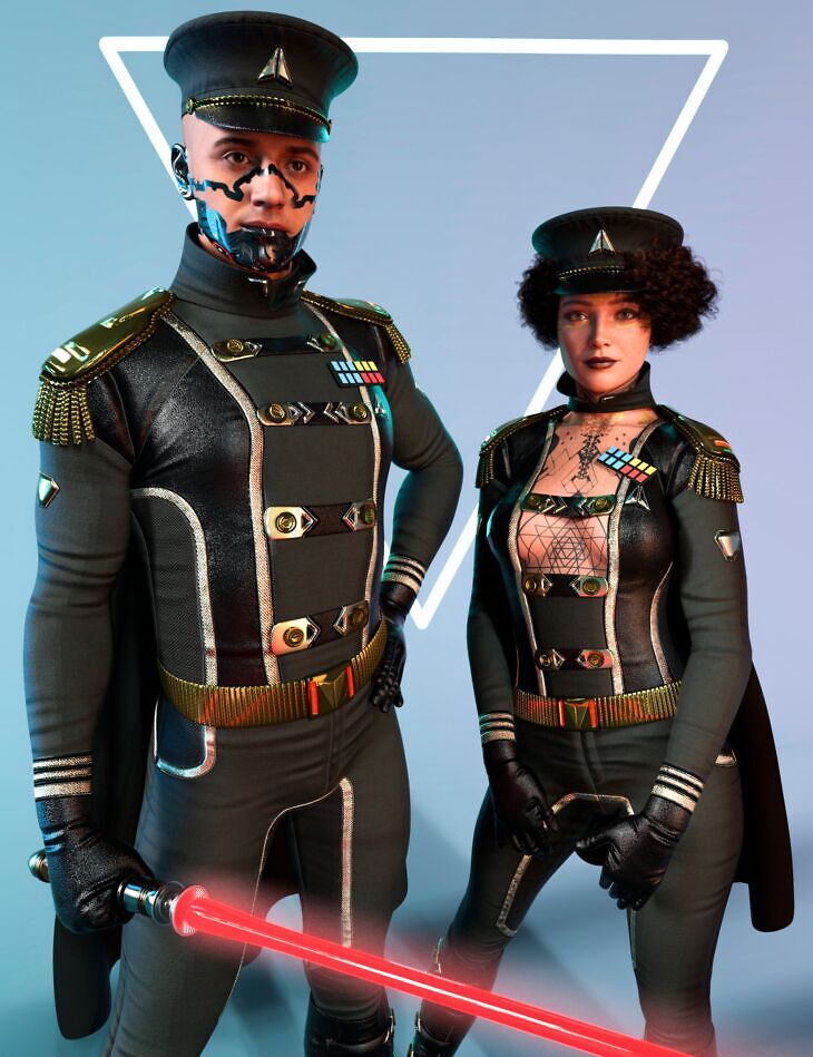 Take command with dForce Space Commander for Genesis , a sci-fi outfit designed for high-ranking officers. This set blends military elegance with a futuristic aesthetic creating a powerful and authoritative presence.
