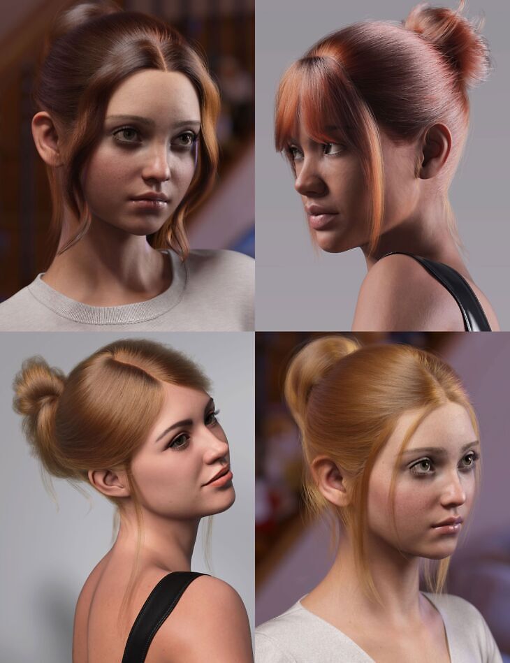 Build your own updo hairstyle with this package full of different hair pieces that are ready to be mixed and matched for hundreds of styles. This hairstyle will fit almost any render genre and be your go-to solution for beautiful updos.