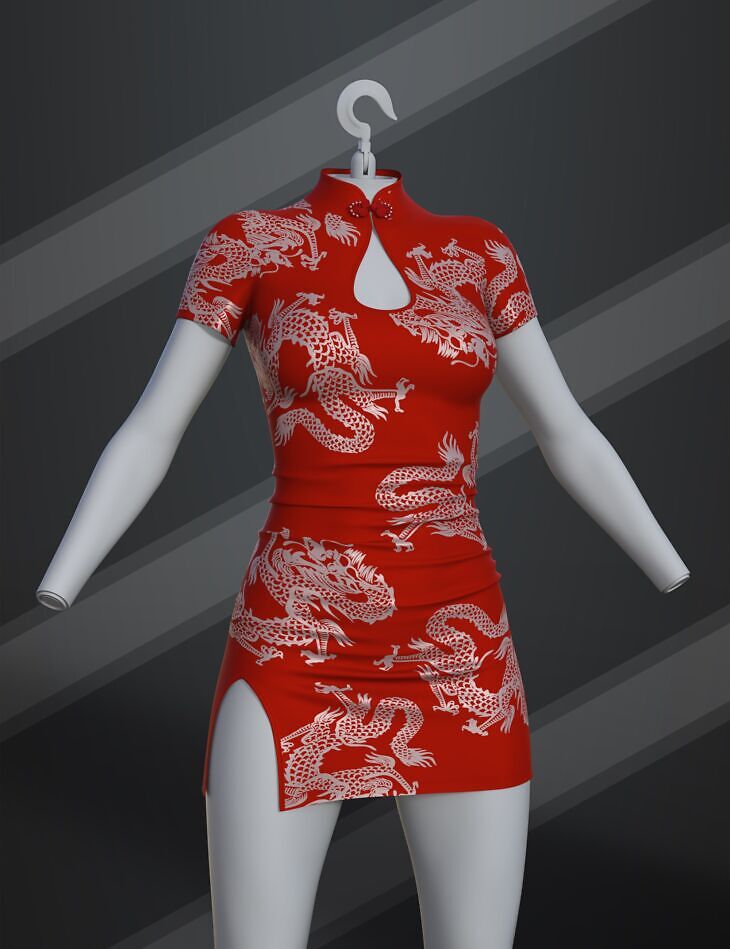 dForce SU Cheongsam Dress for Genesis 9, 8.1, and 8 Female