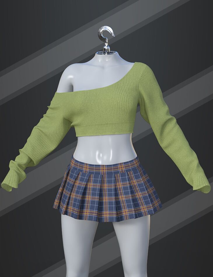 contains 15 sweater materials, 12 skirt materials, and 30 morphs to ensure it works for all your renders.