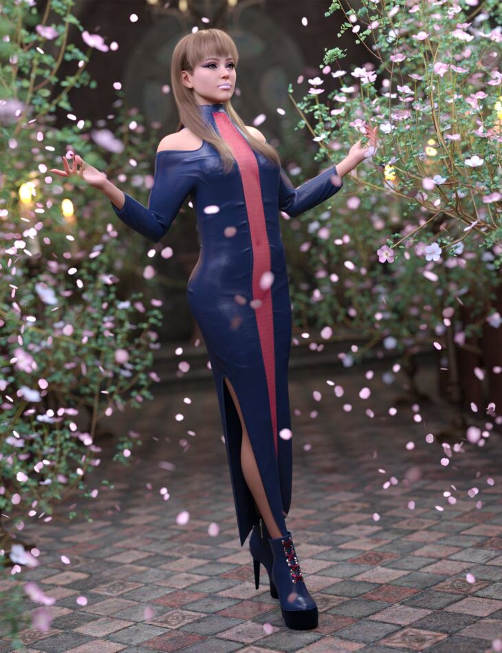 It consists of a long leather dress with open sides and trendy ankle boots. The dress is made to use with dForce but performs well in conforming poses.