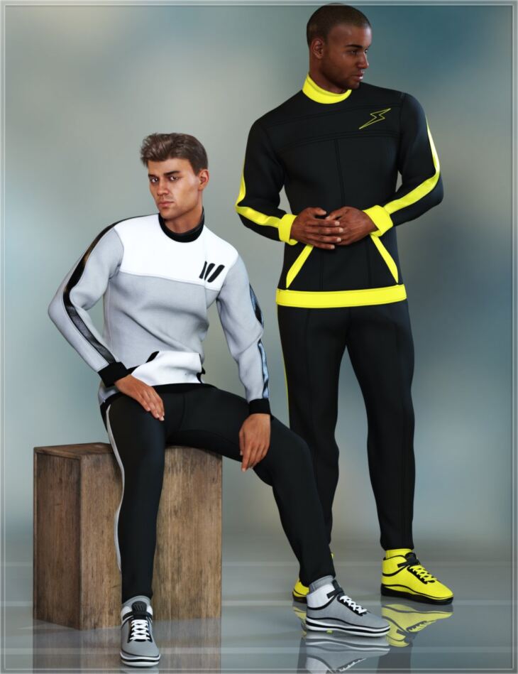 Get stylish and sporty with the dForce Track Outfit for Genesis 8 Males!