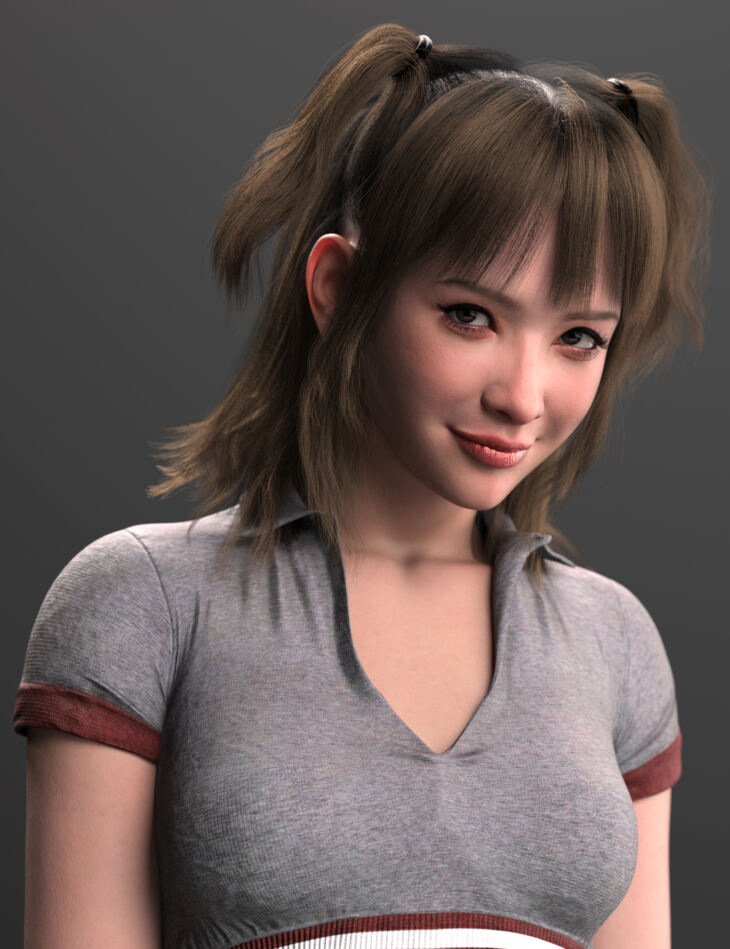 dForce Twin Ponytails Hair for Genesis 9 is a cute manga-type hairstyle. It has two ponytails over a shoulder-length cut.