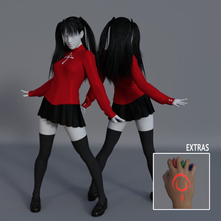 dForce Young Mage Set is a cosplay outfit for Genesis 8 Female, based on F/SN Rin Tohsaka's outfit.