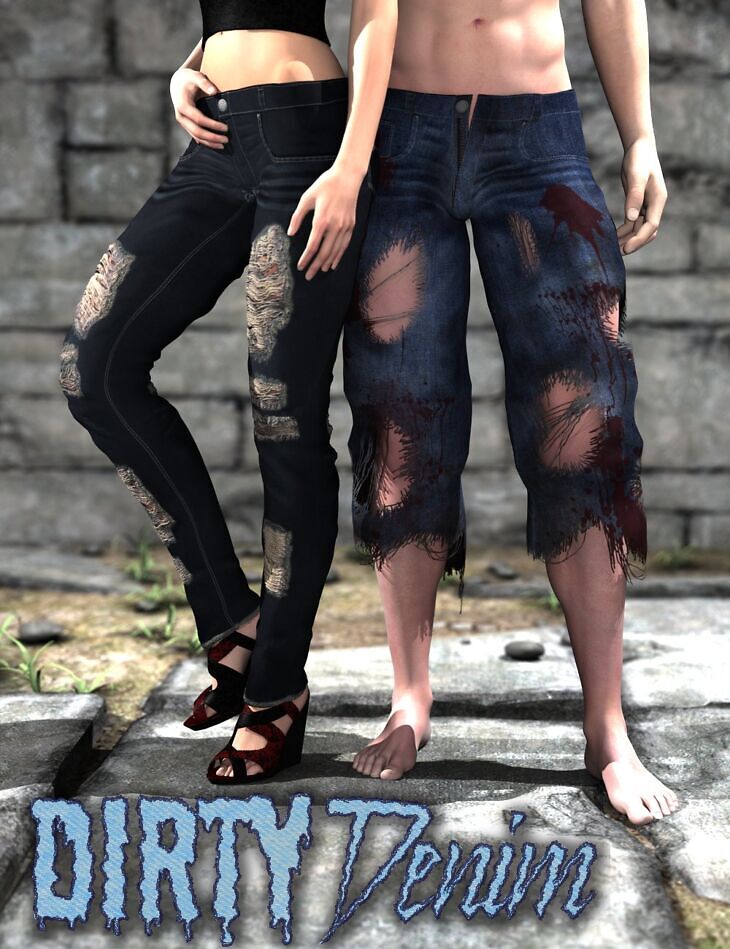 Get down and dirty with these two pairs of morphing jeans for Genesis with many trans and dirt options.