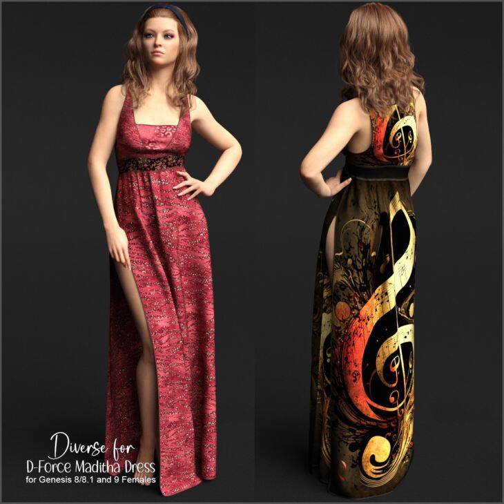 10 Material Presets for the for D-Force Maditha Dress for Genesis 8 and 9 Females