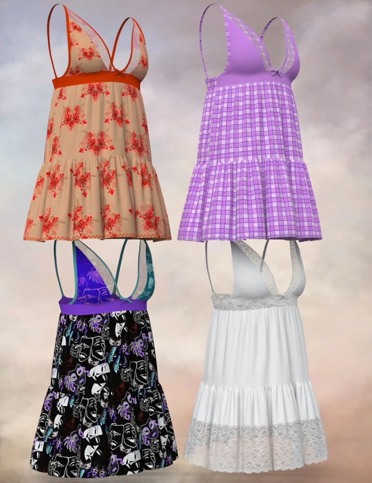 Donnena is pleased as punch to offer the versatile Lola Babydoll. This dress can go from the bedroom to the ballroom with the greatest of ease. It's a Nightie! It's a Sun Dress! It's a Little Black Dress! There are two versions of the dress in the package. One does not have the adorable little bow between the breasts. Because some of the bow textures work with more than one dress pattern, the bow is separately texturable!
