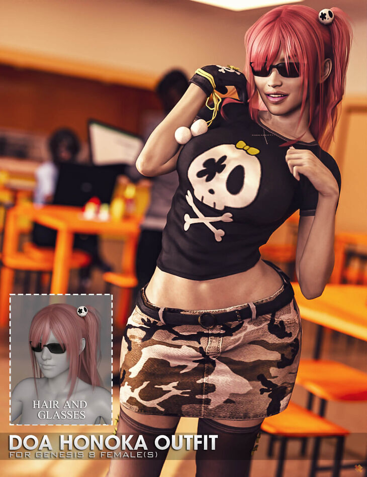 Another Honoka outfit (Hair and Glasses Only) for your Genesis 8 Female library.