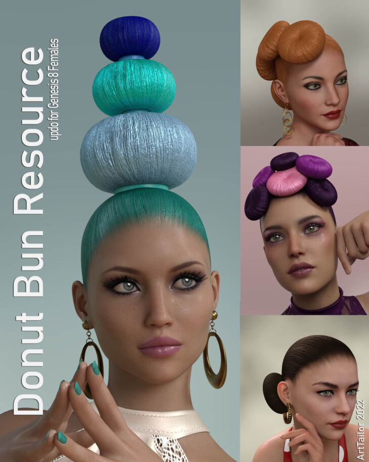 This package includes a hair cap and a donut for the Genesis 8 Female(s) shapes. Use as many buns as you like to create your own unique hairstyles.