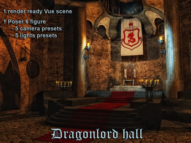 Dragonlord hall is highly detailed model of hall interior, suitable for fantasy or medieval times.