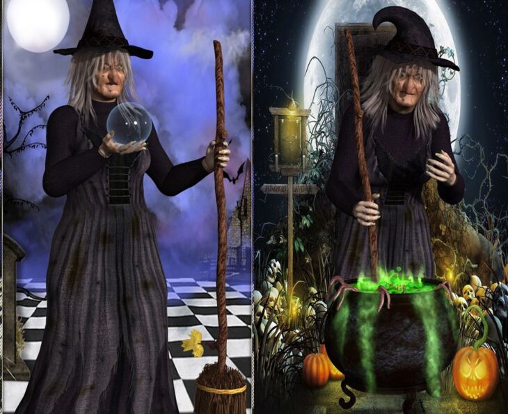 The stereotypical witches are commonly portrayed as wicked old women with wrinkled skin, pimples, and pointy hats. They also have warts on their noses and sometimes long claw-like fingernails.Turn your renders into something wicked this Halloween with Drucilla for V4.