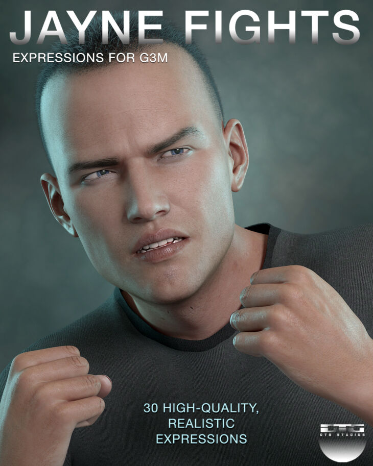 This set includes 30 expressions designed especially for the Genesis 3 Male and his action poses, plus a zero pose to return him to the default expression. I