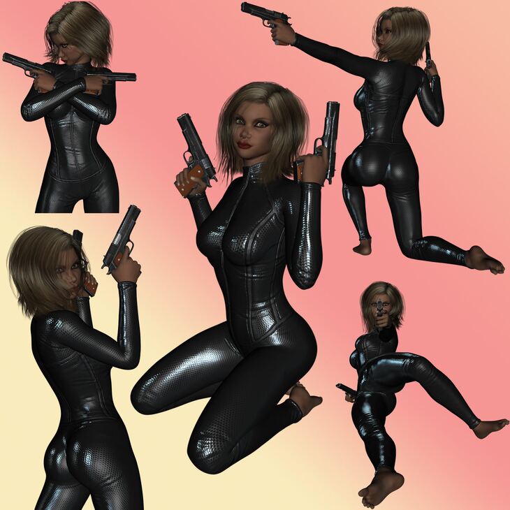 Blast your way through with these 22 poses featuring dual weapon holding.