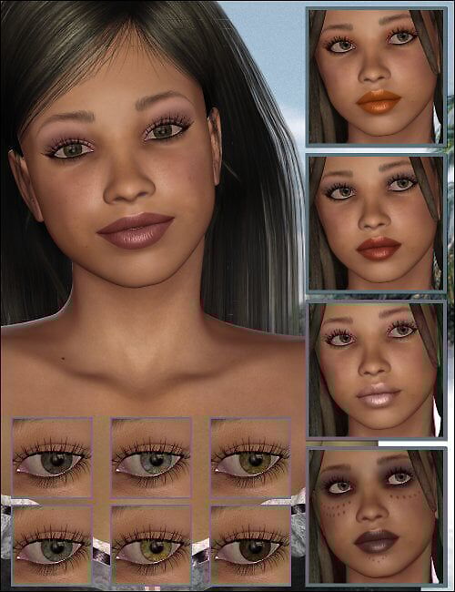 Dulce is a sweet, saucy Caribbean beauty for V4.1. Her dark golden skin tones are also perfect for Creole, Latin, Asian and fantasy characters.