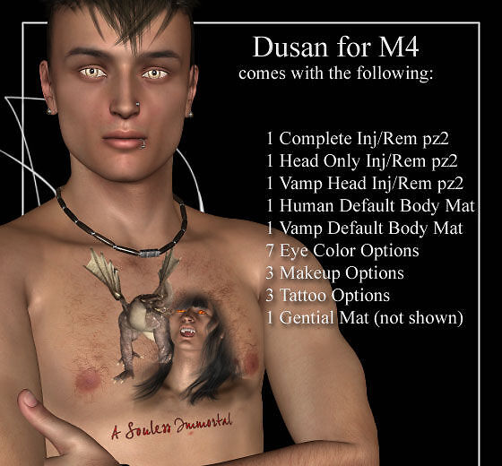 Dusan is a complete character package for M4. The name Dusan means "Divine Spirit", however Dusan is anything but divine.