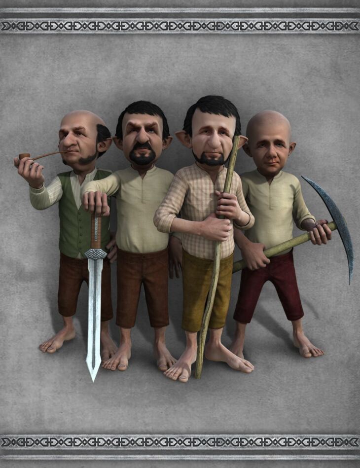 This set contains 27 dwarf-poses for Genesis 2 Male(s) and four smart-props.