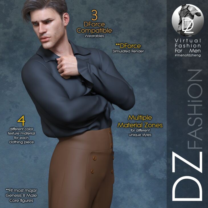 A 3 pieces dForce fashion clothing set for Genesis 8 Male by Daz3D.