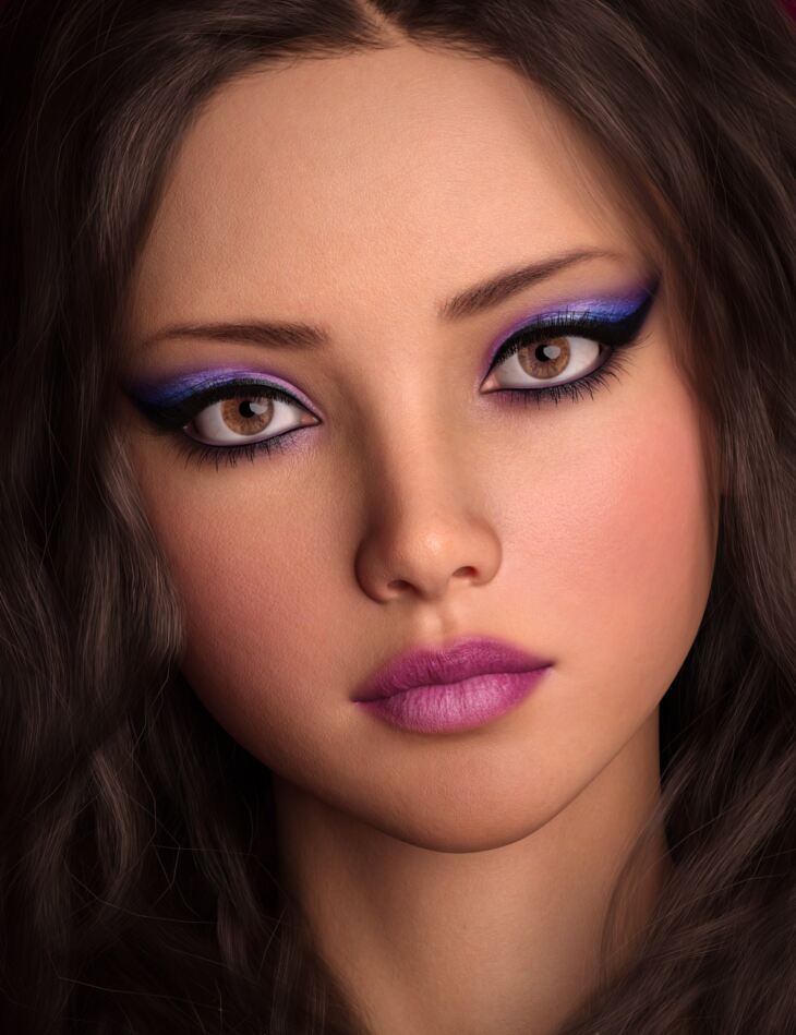 Laima is a custom feminine character for Genesis 9, complete with realistic skin textures, eye colors, lip colors, nail colors, and makeup options to change up her look.