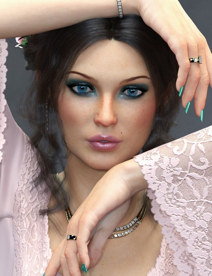 She comes with loads of makeup options, removable tattoos, and longer custom nails. She also comes with a fantasy eye morph, as well as face feathers. Add some variety to your runtime today with Rayvenne HD for Genesis 8.1 Female.