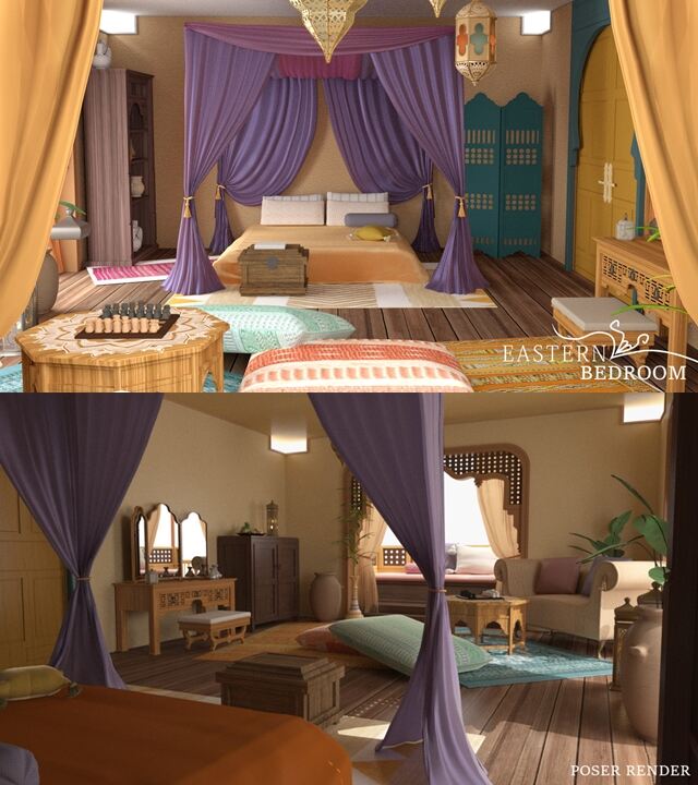 Tired of keeping to only one style for a bedroom? Then change it up with the Eastern Bedroom! A very different take on bedroom design makes this space an excellent change. Even with vibrant colours the room still keeps a fairly neutral theme to avoid a cluttered look.