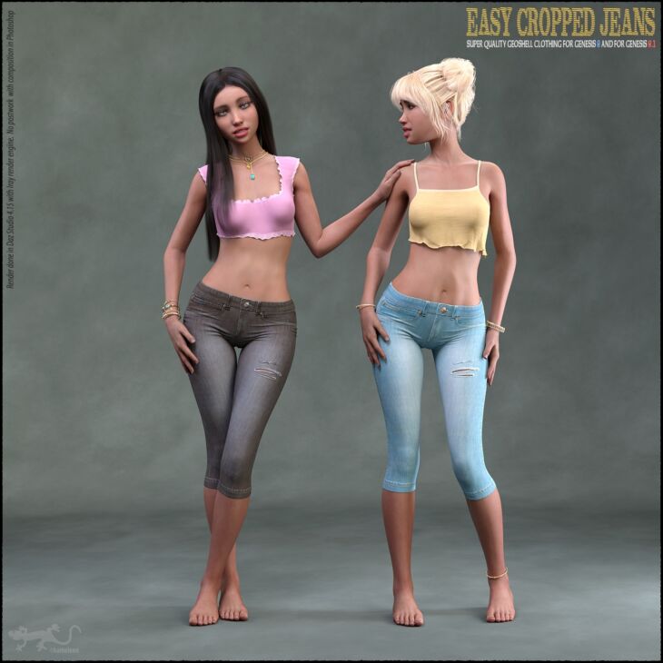 Easy Cropped Jeans - Hi quality, easy to use clothing, designed for G8/G8.1 Geometry Shell, Iray only! WORK PERFECT IN ANY POSES!