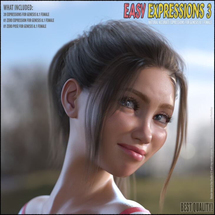 20 top quality, natural, detailed expressions made from real woman, designed for Genesis 8.1 Females.