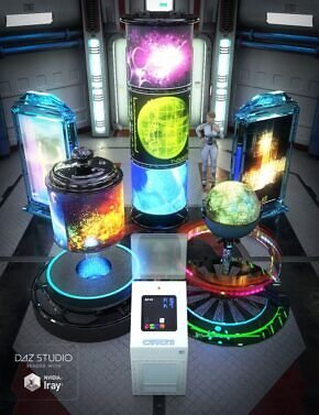It comes with a holographic sphere, control desk with keyboard and screens, a large and small holographic cylinder’s and a holographic walkway.