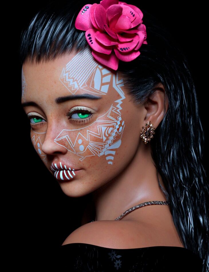 ECK Petal for Genesis 8.1 Female is a fantasy woman with custom tattoos and unique makeup. Petal looks young, but she's a determined woman.