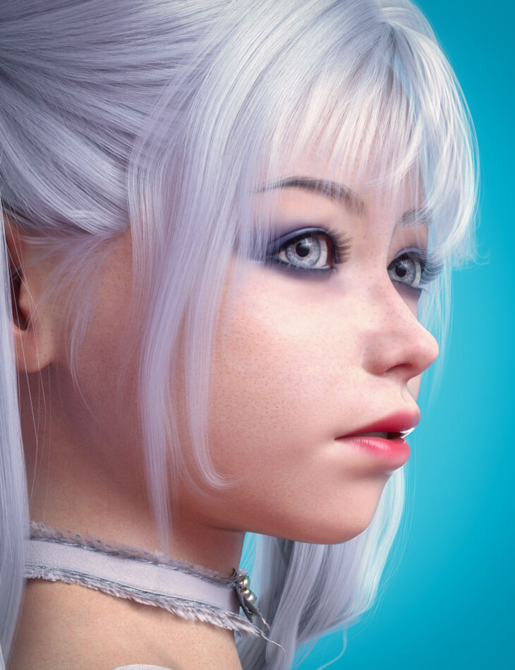 This stylized young lady comes with several eye and lip colors, plus a collection of makeup to choose from.