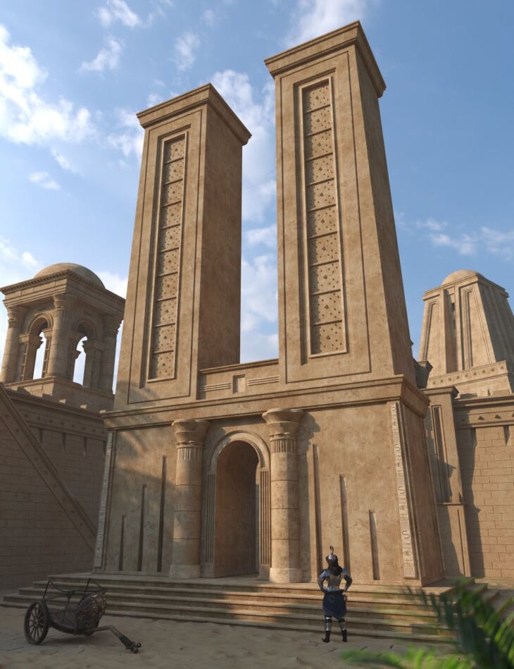 Egyptian Towers is a collection of 5 imposing sandstone structures that will add a sense of scale and majesty to any ancient settlement scene.