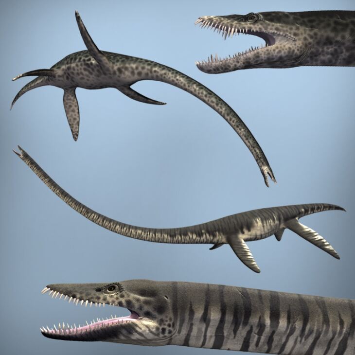 Elasmosaurus platyurus is a genus of plesiosaur of the family Elasmosauridae. Styxosaurus lived during the Santonian and Campanian age of the Upper Cretaceous period ( 83.5 - 70.6 mya). It was found in western Kansas, USA. Elasmosaurus was 14 meters (46 ft) long.