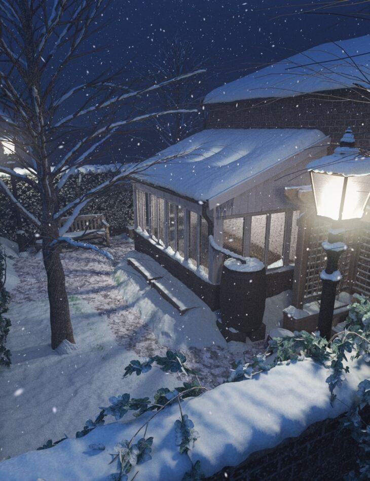 The Winter Enclosed Side Garden is a wonderful white snowy add-on for the Enclosed Side Garden with atmospheric render settings and options for both night and day. It comes with alternative textures from the base set that will work with a frosty or snowy scene.