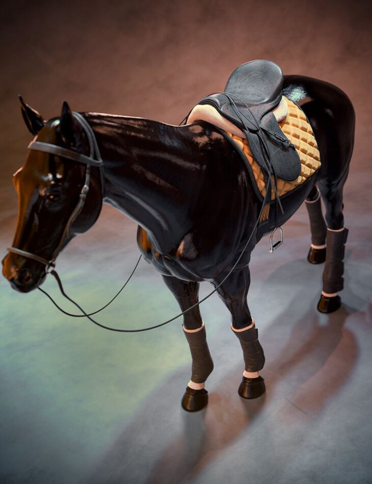 English Style Tack is a set for the Daz 3 Horse in the style of English equestrian riding gear. Ride your steed in style with this set.