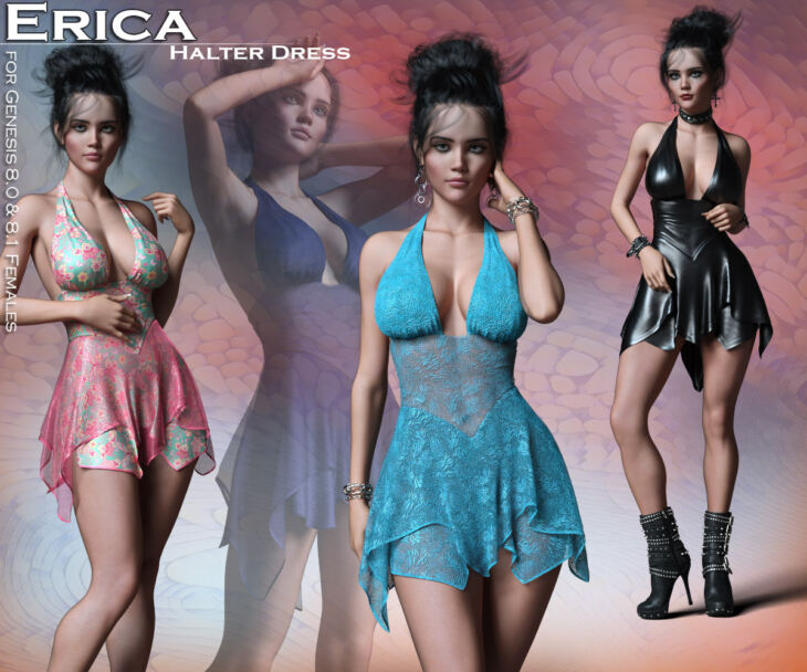 The Erica Halter Dress is a sexy new halter dress for the Genesis 8/8.1 Females. It has a cincher style waist and a beautiful handkerchief hemline.