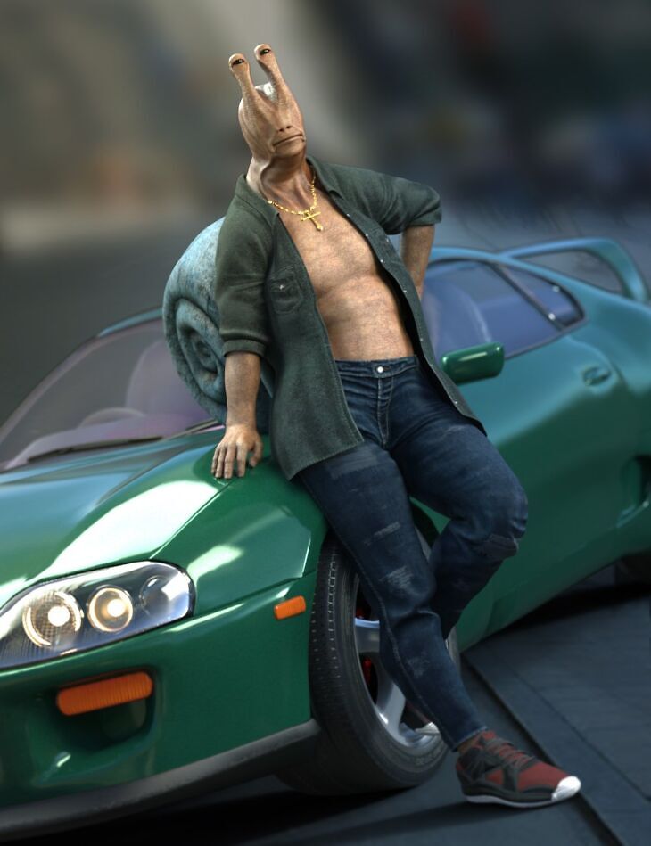 Escarlo, the ultimate anthropomorphic snail character ready to slime his way into your next adventure! Escarlo combines a humanoid form with signature snail traits, featuring long, expressive eyestalks and an optional shell attachment that lets you transform him into either a proud snail or a nimble slug.