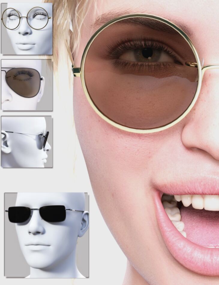 All of the glasses are wearable presets so it's easy to fit your custom characters too.
