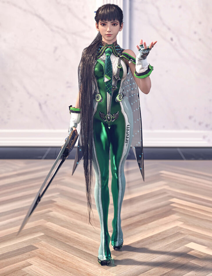 EVE from the game Stellar Blade for Genesis 9 - Character, 2 outfits, Dforce hair, weapon.