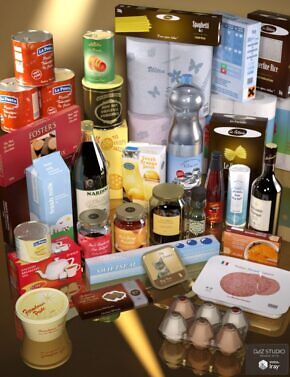 This is a large set of realistic grocery props to fill your scenes and add some exra realism.