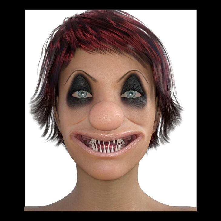 Evil Clown Morphs for Genesis 8 Female is a package of 28 individually sculpted clowns face parts.