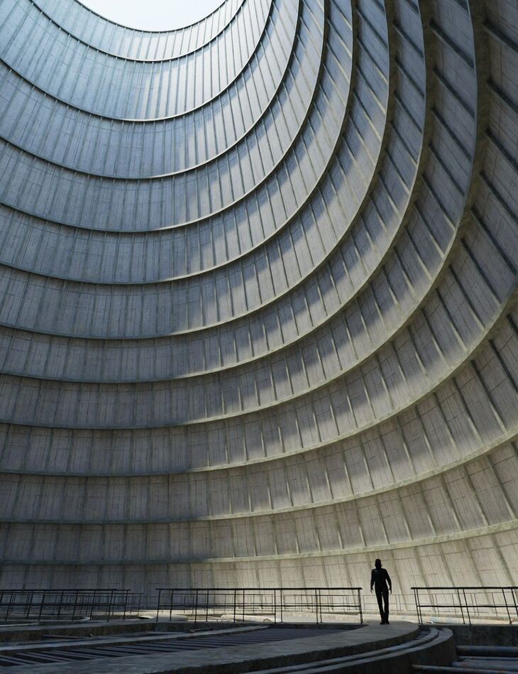 Though measuring 64 meters across and 83 meters tall and containing over 6 million polygons of modeled detail, the Exhaust Tower has been reduced to a manageable 125,000 polygons through the careful use of instancing, making it much easier to use on most computer systems.