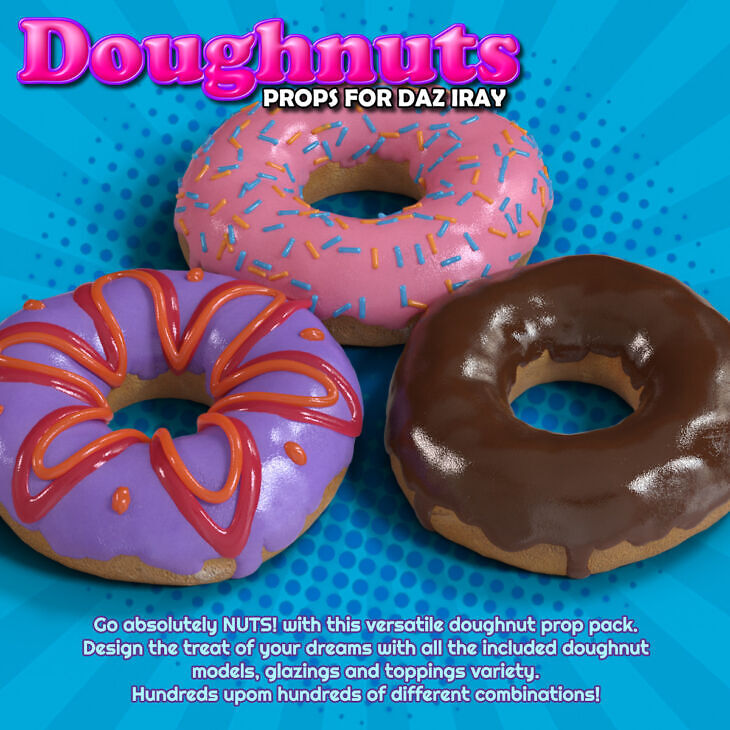 This product brings you an amazing array of props and materials to create any doughnut you can imagine!. If you mix and match all the included materials and models you get more than 500 possible combinations.