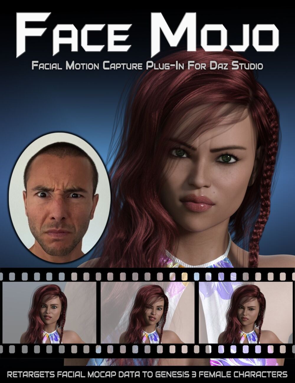 Face Mojo is a facial motion capture solution for Daz Studio. Using your iOS device with a TrueDepth front-facing camera and one of the supported Apple ARKit Apps record facial animation. Then import the file into Daz Studio and use Face Mojo to apply that animation to your favorite Genesis 3 Female characters.