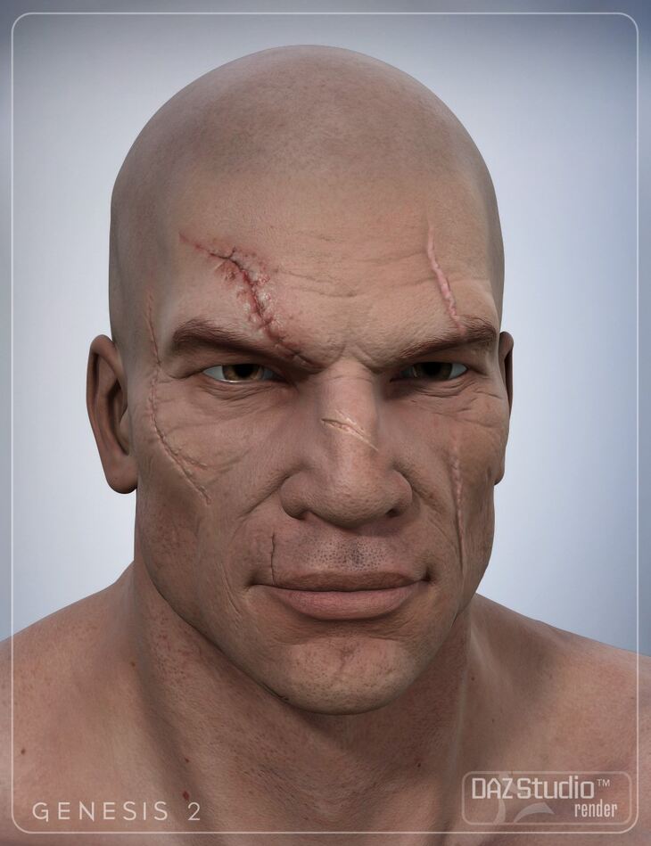 The set consists of 11 facial scars. This set can be used with any skin textures. But may need adjustment scar diffuse color. In video shows how to do it.