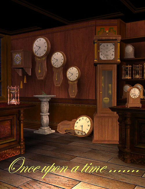 The Fairytale Furniture collection includes basic furniture sets in the style of 18th Century Central Europe, from the heart of the Black Forest, Brothers Grimm country. The latest in this collection is the Once Upon a Time set, a variety of clocks to use in your fairytale settings or in any render where time is of the essence.