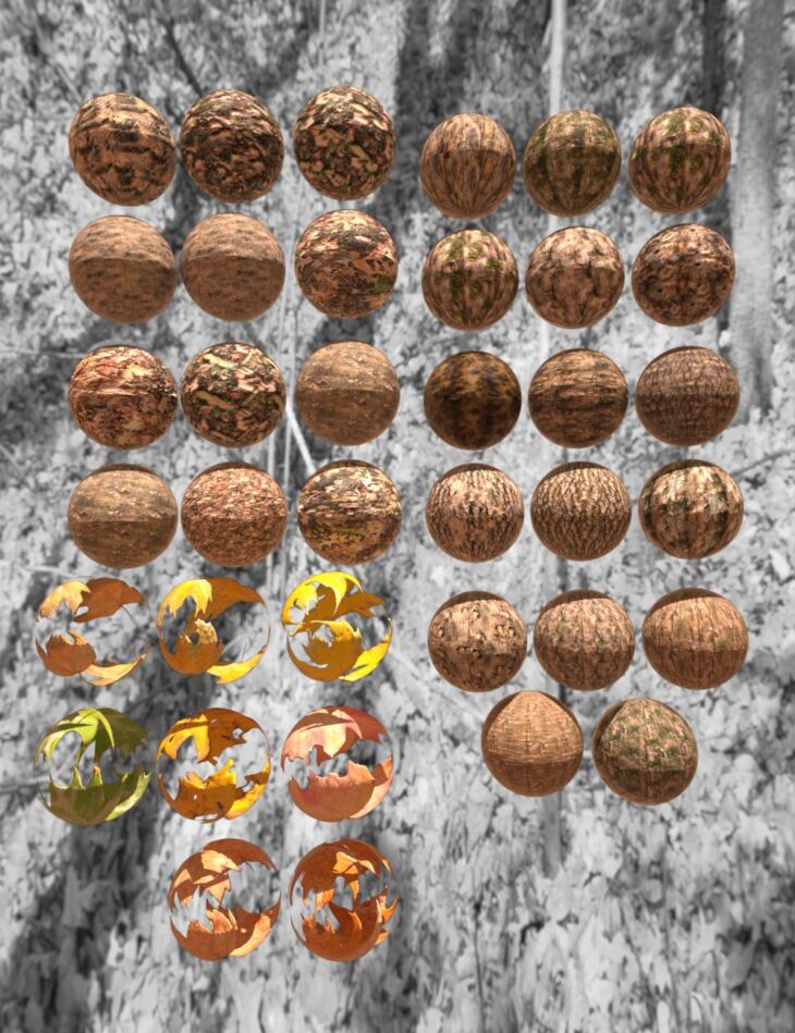 Fall Wood Textures Resources is a wonderful seasonal pack to enchant your environment with an autumn mood! Ground, leaves, and bark shaders — everything you need is here. Enjoy the photo-scanned premade shaders to make your realistic scene.