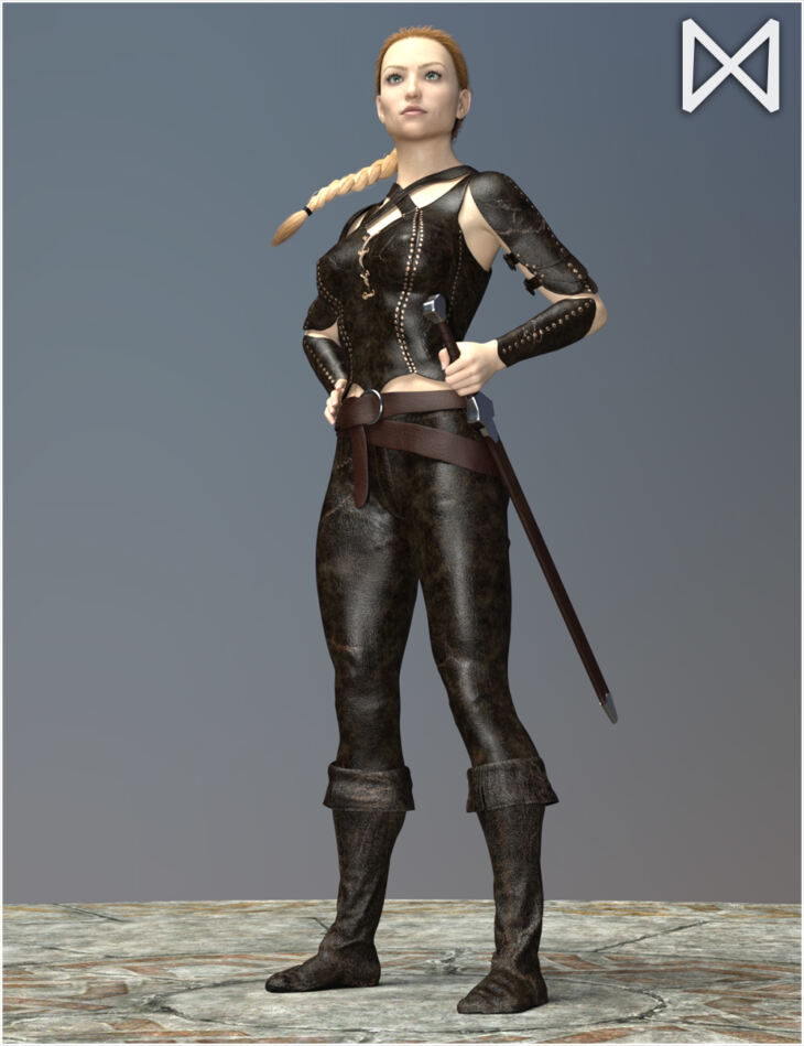 The set consists of a conforming belt, a scabbard, and a sword, all with a variety of morphs for adjusting to fit nearly any G8F character or outfit.