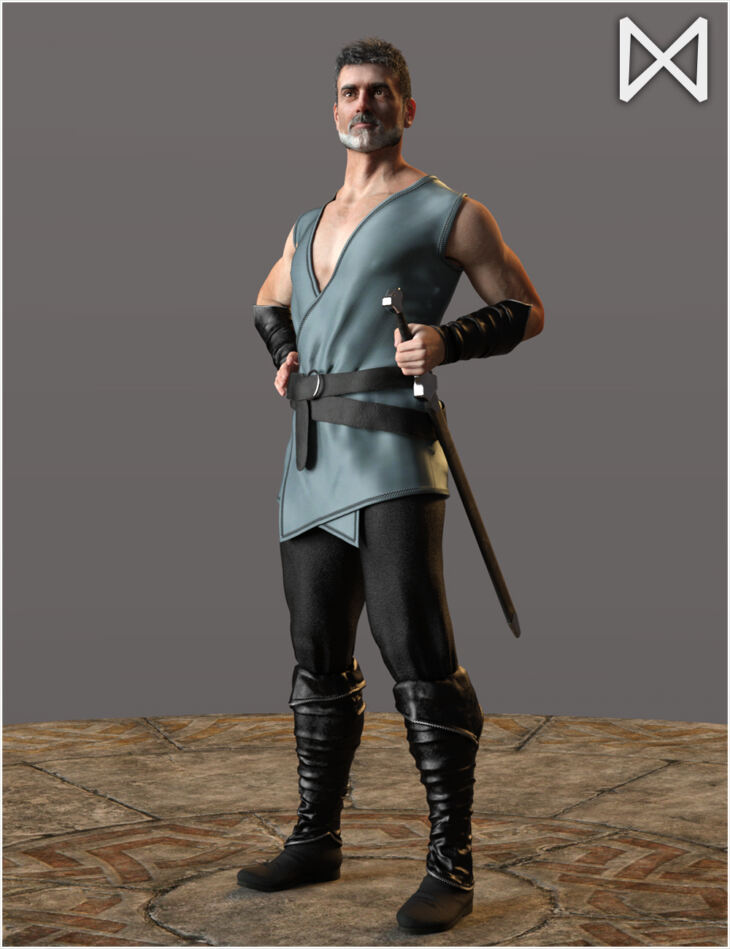 Every hero needs a good sword on hand, no matter what the outfit. That's where the Fantasy Sword Belt set comes in. The set consists of a conforming belt, a scabbard, and a sword, all with a variety of morphs for adjusting to fit nearly any G8M character or outfit.